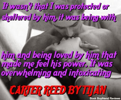 Holy Shit! There are few times that I have come across a character so powerful that before he is fully introduced in a book that I am already wet with anticipation to finally meet him. Carter Reed is this man. Just the way he was portrayed prior to a proper introduction I knew I was a goner. The way he is described is just WOW!